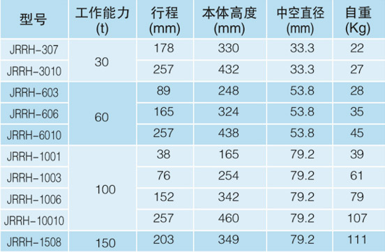 我公司設計制造的雙作用空心張拉千斤頂JRRH系列采用雙油路可快速回油,空心柱塞可允許推力與拉力作用;適用于各類測試、維修以及需要張拉力的特殊應用場合。